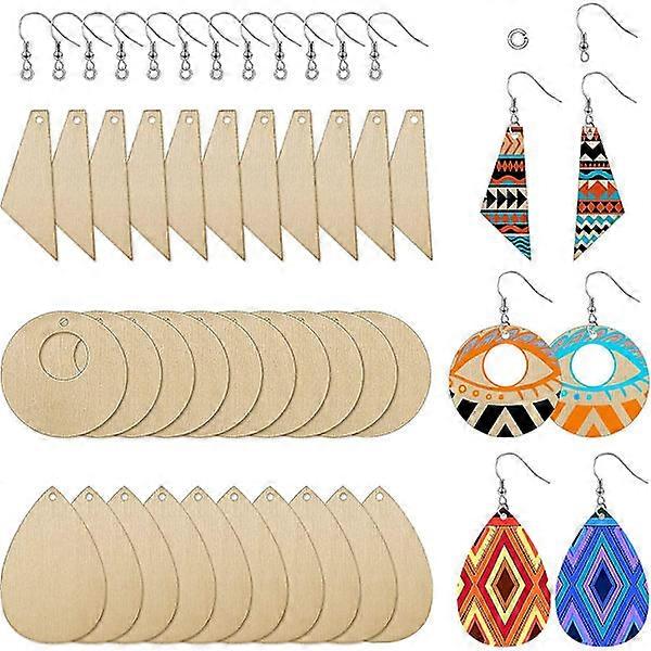 60 pcs Unfinished Wood Earring Pendants Blanks with Earring Hooks and Jump Rings for DIY