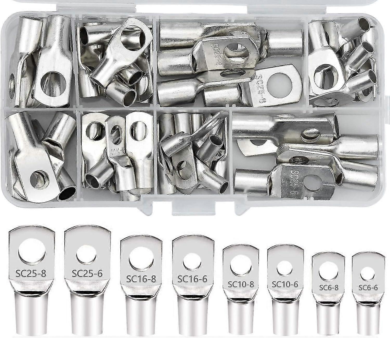 60 Pcs Electrical Lugs Hole Bolt Tinned Copper Crimp Ring Terminals