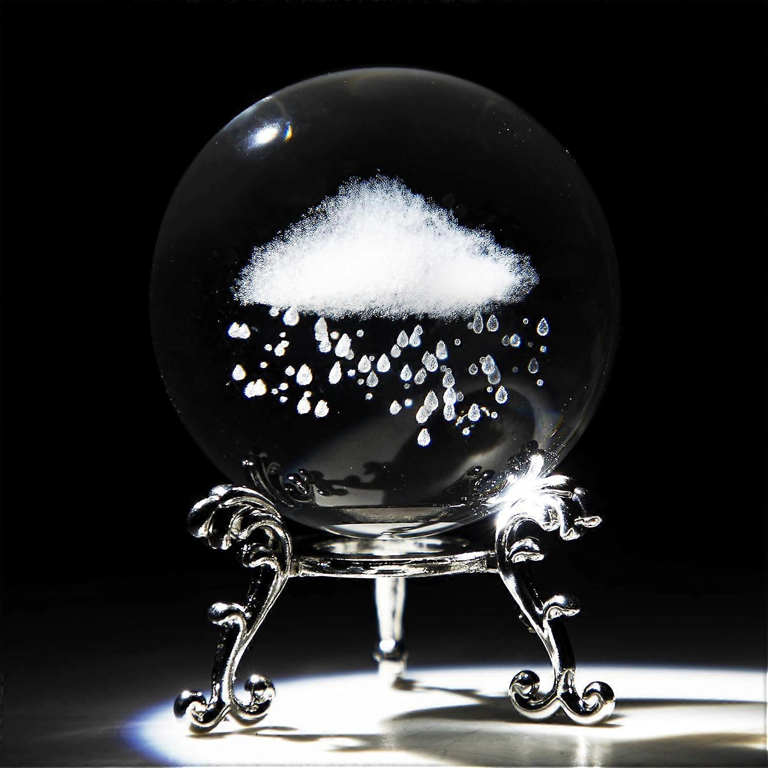 60mm/2.3inch 3D Inner Carving Rain Cloud Crystal Ball Paperweight with Silver Base Fengshui Decorative Ball Figurine Ornament Glass Sphere for Home Ar