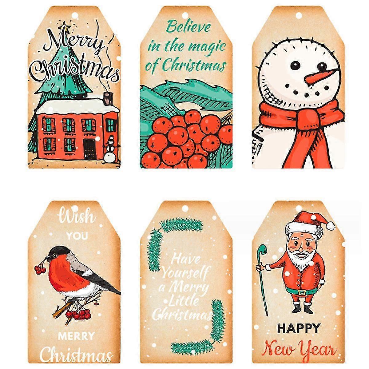 60 Vintage Christmas Gift Tags with String for Holiday Home Decor (1.57 x 2.76)