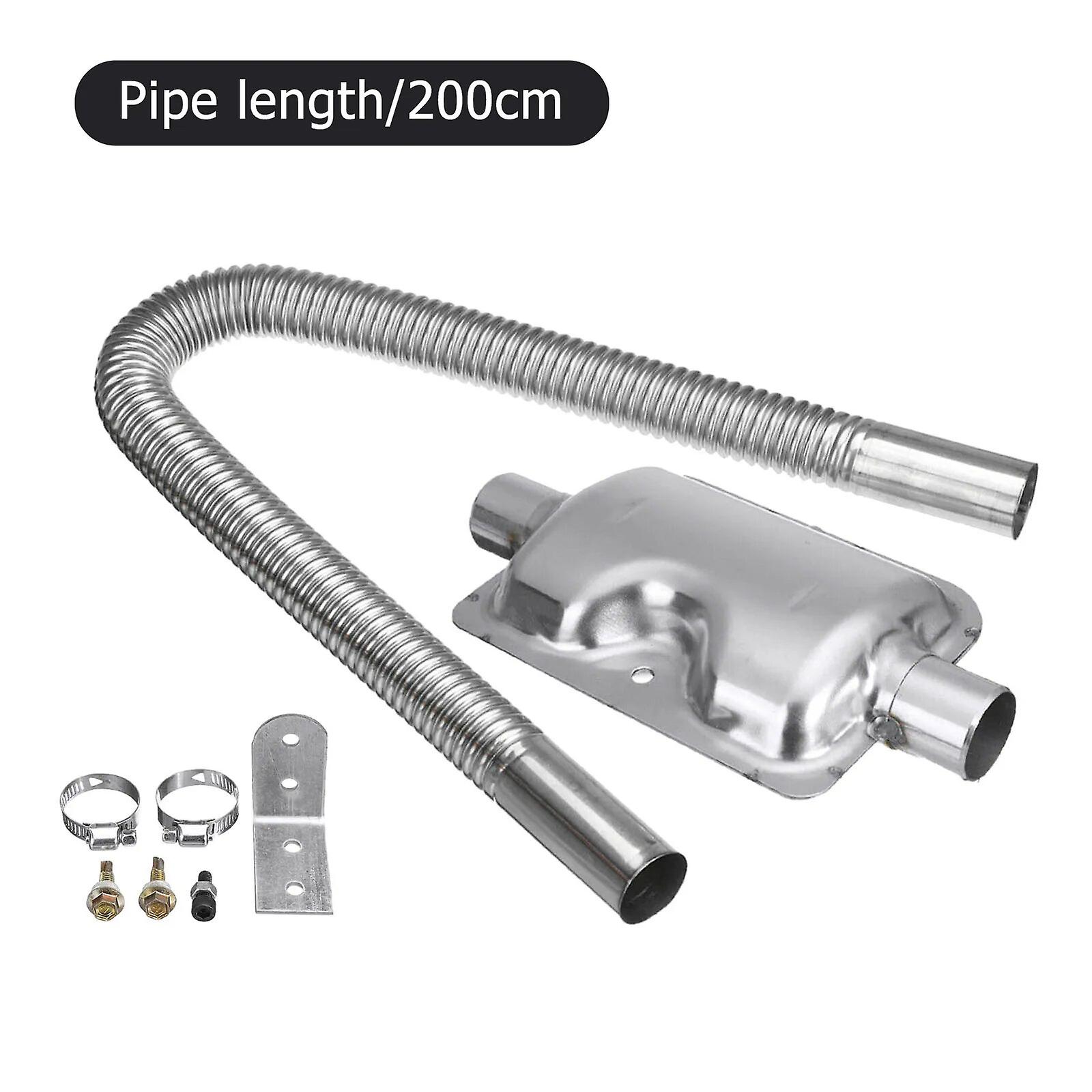 Metal Air Diesel Parking Heater 13-300cm Stainless Steel Gas Vent Hose Auto Accessories Exhaust Pipe Hose Tube for Propex HeaterFeature:1. High quality material: The exhaust pipe is made of high quality stainless steel. High temperature resistance, firm and not easy to deform. Safe and durable, corrosion resistant, wear-resistant, long service life.2. Noise reduction: The exhaust hose has good noise reduction effect, which can effectively reduce noise. The silencer can be independently supported and can be freely retracted during operation.3. Easy installation: These vehicle tools can be easily installed on the ventilation duct. No drilling or cutting is required. Please confirm the outer diameter of the pipe before purchase.4. Perfect replacement original: This accessory is a perfect replacement original. Return the auxiliary heater to normal operation. Save maintenance time and cost. Directly remove the old or damaged exhaust hose, connect the new stainless steel exhaust hose to the vehicle, and clamp the two ends of the exhaust pipe with clips.5. Wide compatibility: This connection can be used for Eberspacher / Propex heater / Eberwebasto heater and other diesel heaters. Compatible with any channel with an internal diameter of 24-25mm/0.94-0.98in, parking air heater, parking air oil heater, automobile air heater and engine exhaust gas, etc.Specification: Origin: Mainland China Model Number: Exhaust Pipe Material: Stainless steelMaterial: Stainless steelColor: SilverType: Pipe orifice inner diameter 2.5cm/0.98in, muffler outer diameter 2.4cm/0.94in, muffler inner diameter 2cm/0.79inAccessories: Used for Eberspacher / Propex heater / Eberwebasto heater, etc.Package size and weight parameters:13cm elbow pipe: Net weight 29g, gross weight 30g, Package size: 8x8x3cm/3.15x3.15x1.18in60cm straight pipe: Net weight 116g, gross weight 120g, package size 30x3x8cm/11.81x1.18x3.15in120cm straight pipe: Net weight 187g, gross weight 190g, package size 40x7x5cm/15.75x2.76x1.97in150cm straight pipe: Net weight 235g, gross weight 240g, package size 40x8x6cm/15.75x3.15x2.36in200cm straight pipe: Net weight 306g, gross weight 310g, package size 42x9x7cm/16.54x3.54x2.76in300cm straight pipe: Net weight 413g, gross weight 420g, package size 42x11x8cm/16.54x4.33x3.15in60cm straight pipe+silencer: Net weight 300g, gross weight 310g, package size 40x7x10cm/15.75x2.76x3.94in120cm straight pipe+silencer: Net weight 372g, gross weight 380g, package size 40x7x10cm/15.75x2.76x3.94in150cm straight pipe+silencer: Net weight 420g, gross weight 430g, package size 40x8x11cm/15.75x3.15x4.33in200cm straight pipe+silencer: Net weight 491g, gross weight 500g, package size 42x9x12cm/16.54x3.54x4.72in300cm straight pipe+silencer: Net weight 598g, gross weight 610g, package size 42x11x13cm/16.54x4.33x5.12inSilencer: Net weight 185g, gross weight 190g, package size 17x9x4.5cm/6.69x3.54x1.77in Note:Due to the different monitor and light effect, the actual color of the item might be slightly different from the color showed on the pictures. Thank you!Please allow 1-2cm measuring deviation due to manual measurement.01-06:1 X Exhaust Pipe2 X Snap Clamps07-11:1 X Exhaust Pipe1 X Silencer2 X Snap Clamps1 X Installation Package Kit12:1 X Silencer1 X Installation Package Kit2 X Snap Clamps