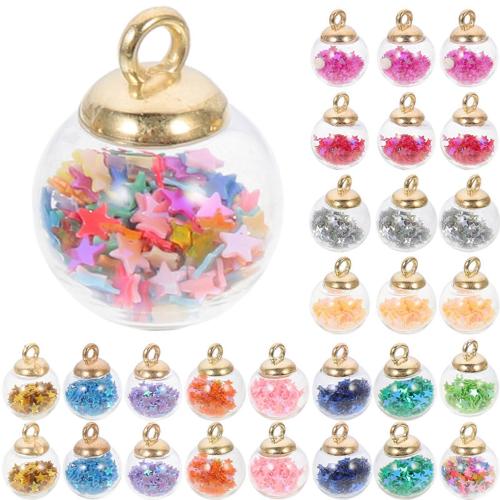 60pcs Glass Ball Charms Pendant with Stars Sequin for Necklace Bracelet Earring Jewelry Making Mixed Color