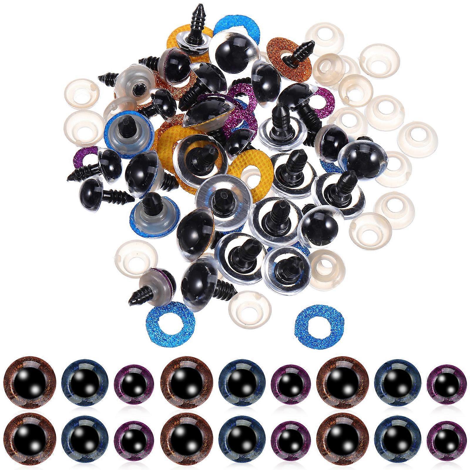 60pcs Colorful Safety Eyes with Washers for Crochet Dolls & Stuffed Animals – Easy to Use, Glitter Design, Assorted Colors for DIY Crafting Projects