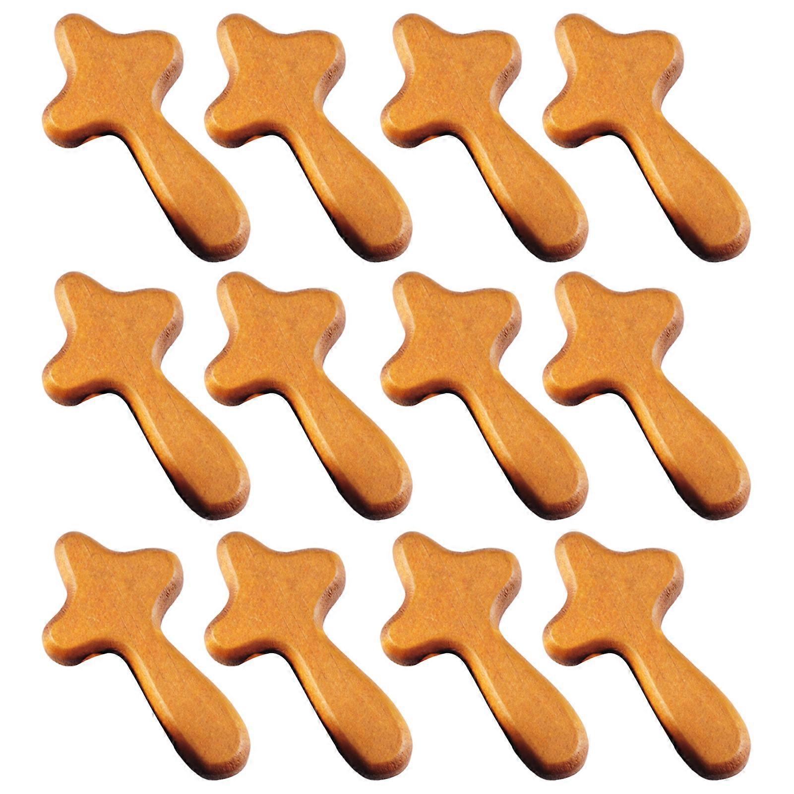 6/12Pcs Pine Wooden Hand Cross Smooth Surface Palm Size Portable Holding Cross Keychain Accessories Prayer Gift Jikaix