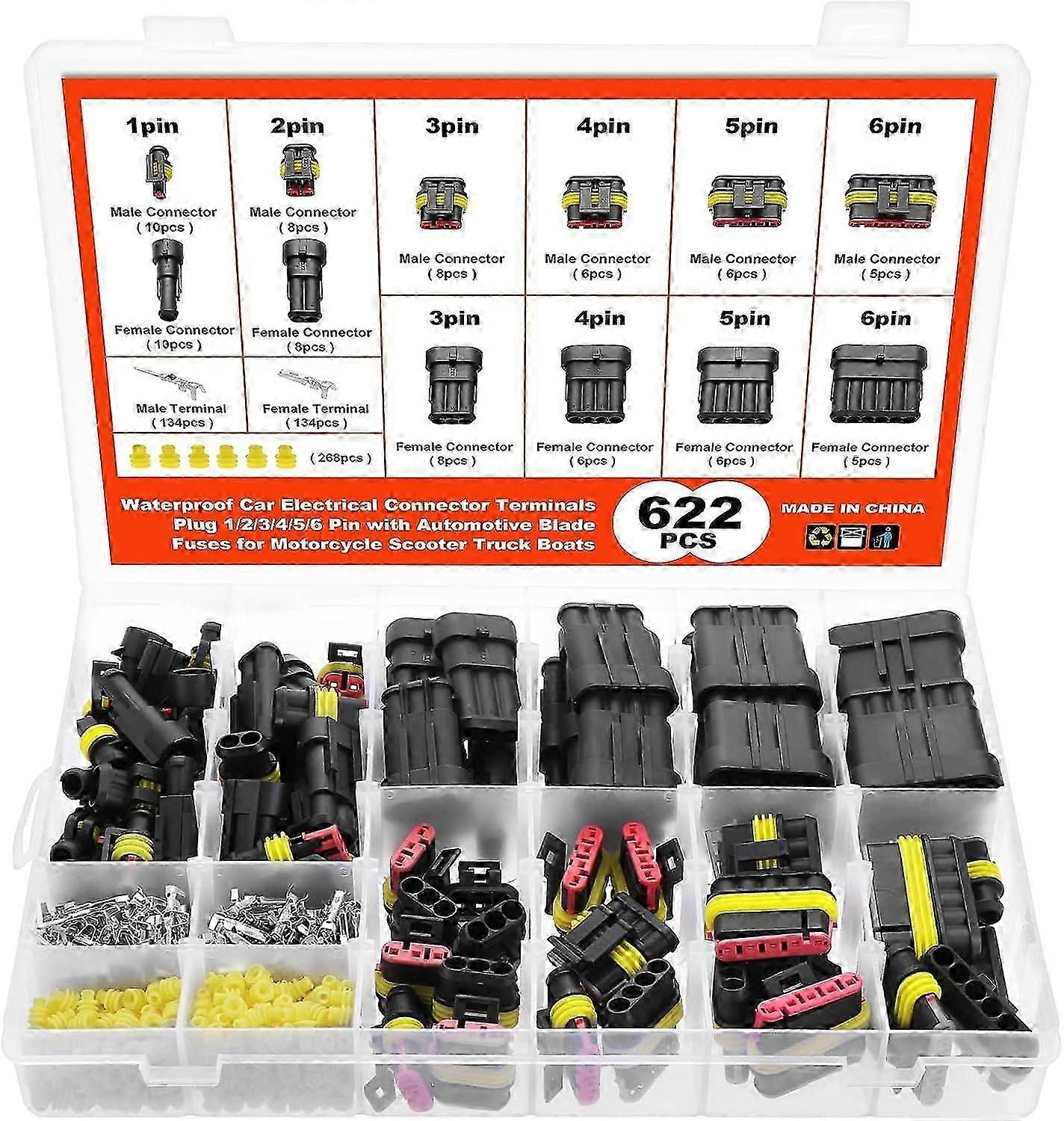 622pcs Waterproof Electrical Connectors Car Motorcycle Scooter Trucks Waterproof Electrical Connectors Marine Waterproof Connectors.