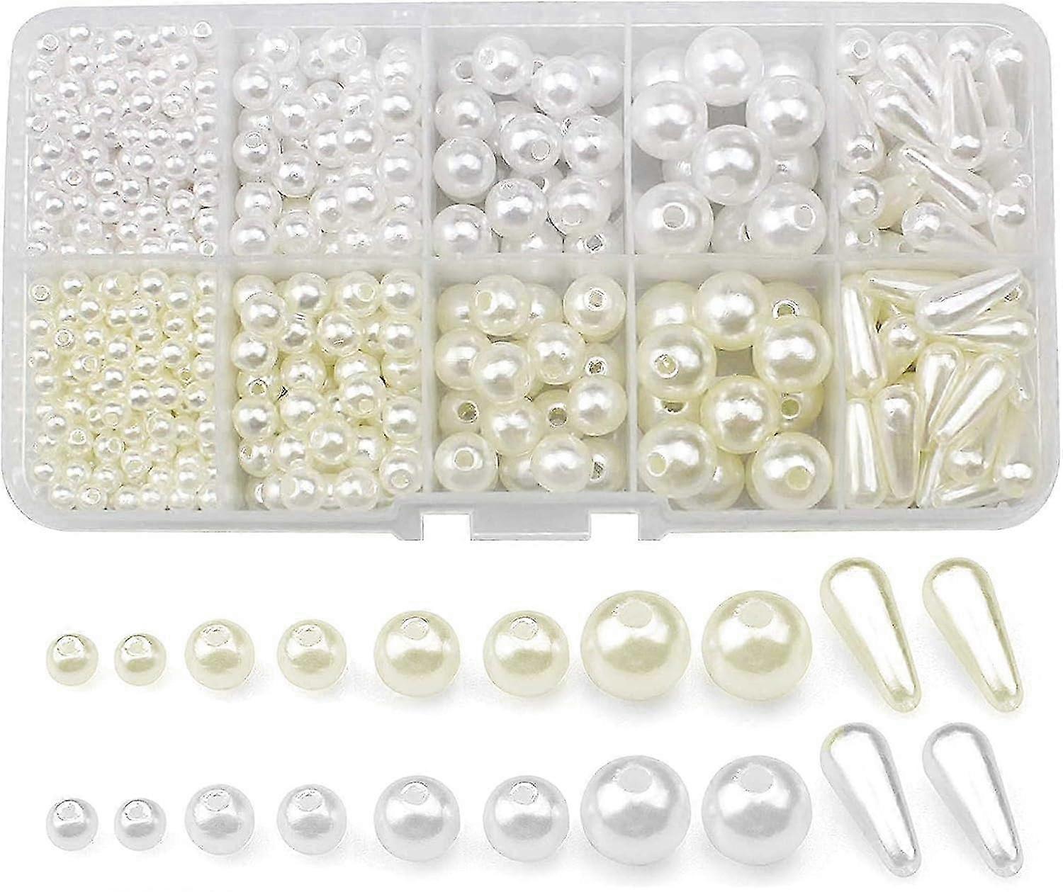 644 Pcs Faux Pearl with Hole, Mixed Size Beads Set for Necklaces, Bracelets, Craft DIY Jewellery Making 2025