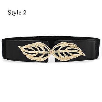 65cm Classic Black Corset Elastic Belts For Women Leaves Metal Buckle Stretch Belt Cummerband Wide Belt Dress Coat Waistbands