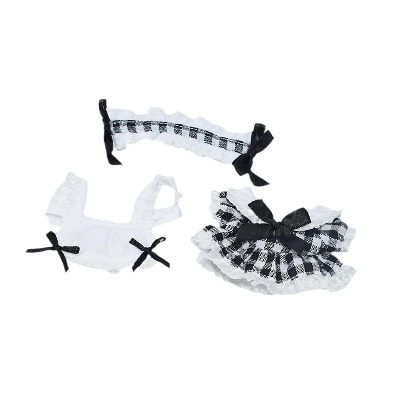 6.69inch Doll Clothes Cute for Kids Birthday Gift Soft Stylish Doll Clothing Plaid Maid outfit
