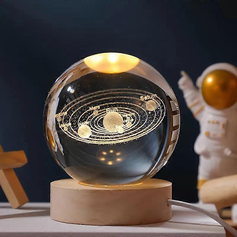 6/8cm 3D Crystal Ball Planet Night Light Laser Engraved Solar System Globe Astronomy Festival Gifts Home Desktop Decoration