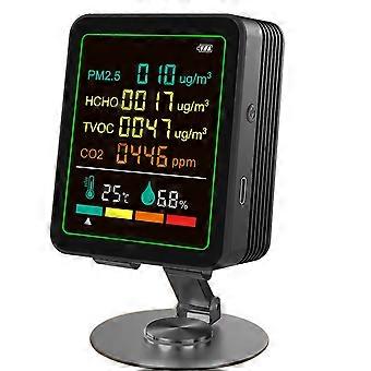 6in1 Digital Air Quality Monitor Detector Formaldehyde TVOC Black