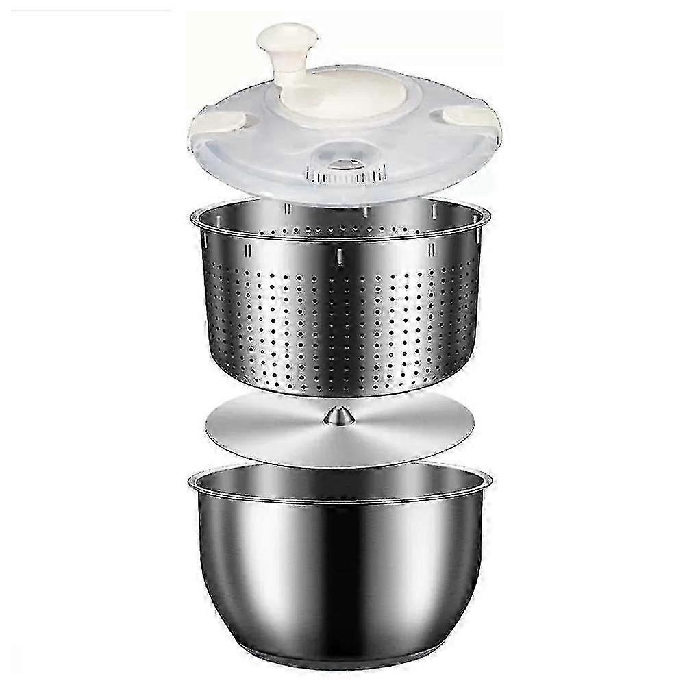 6L Salad Spinner Stainless Steel Large Vegetable Washer with PP Lid for Fruit Washer Pasta & Fries Spinner Salad Dryer