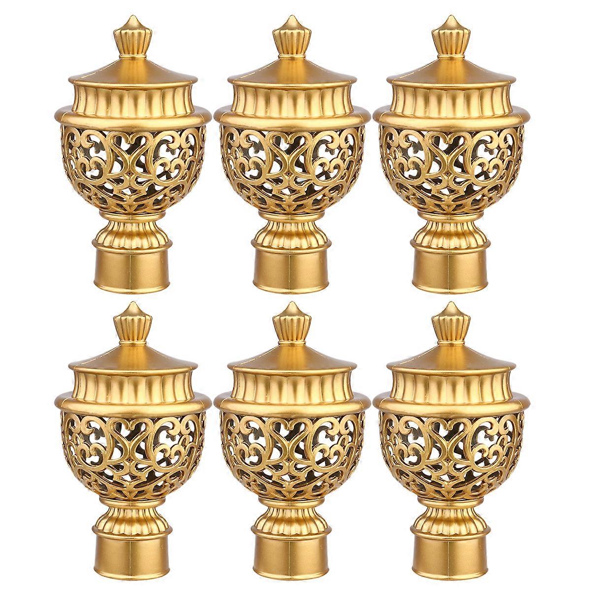 6PCS Decorative Window Curtain Rod End Creative Window Curtain Rod Head Plug Retro Roman Curtain Rod Fittings for Home Decor (Golden)