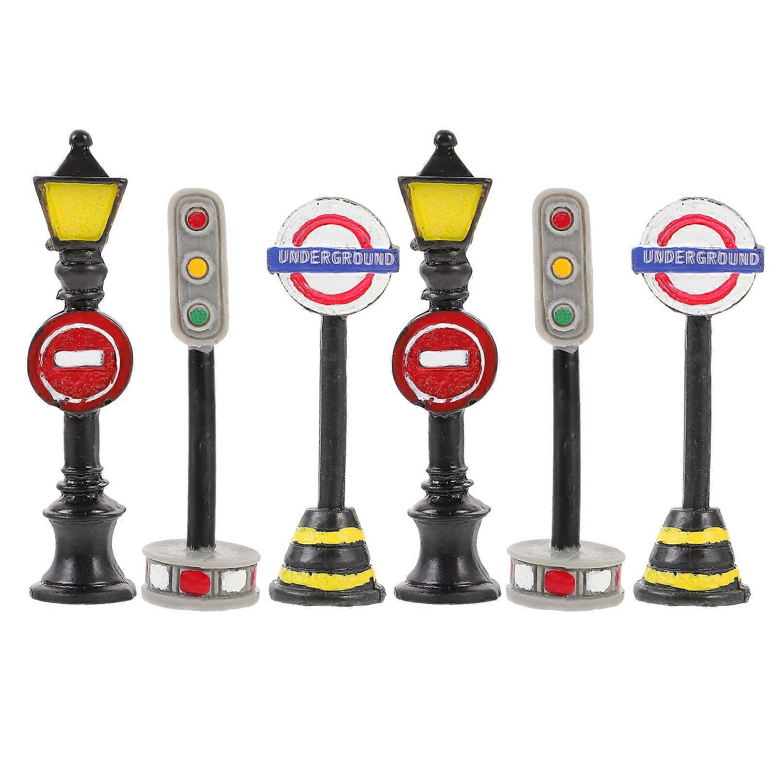 6pcs Mini Street Light Models Miniature Street Lamp Guide Board Models Miniature Dollhouse Decor
