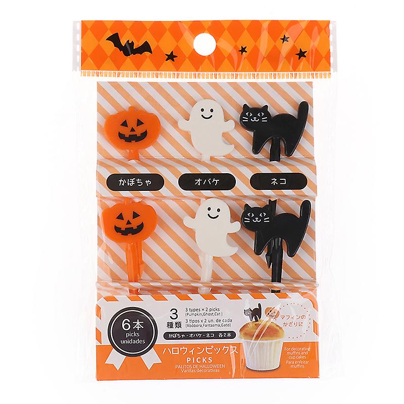 6pcs Mini Kids Halloween Fruit Fork Cartoon Snack Cake Dessert Food Toothpick