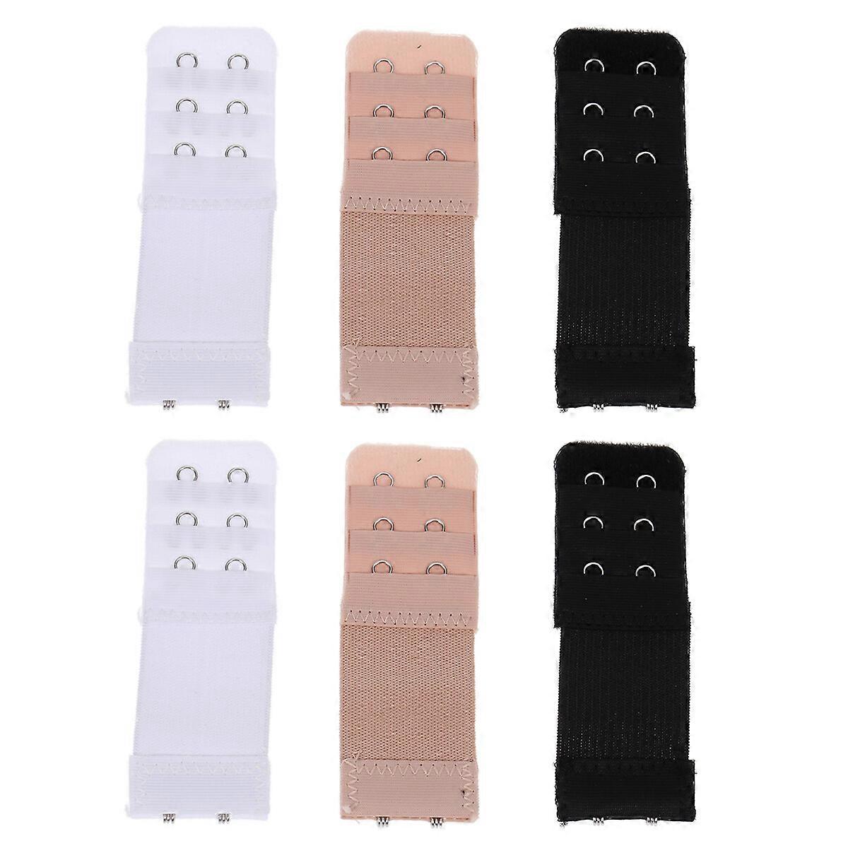 6pcs Women Comfortable Bra Extenders Elastic Extension Buckle Bra Lengthened Strap (2 Hooks, Black, Apricot, White)