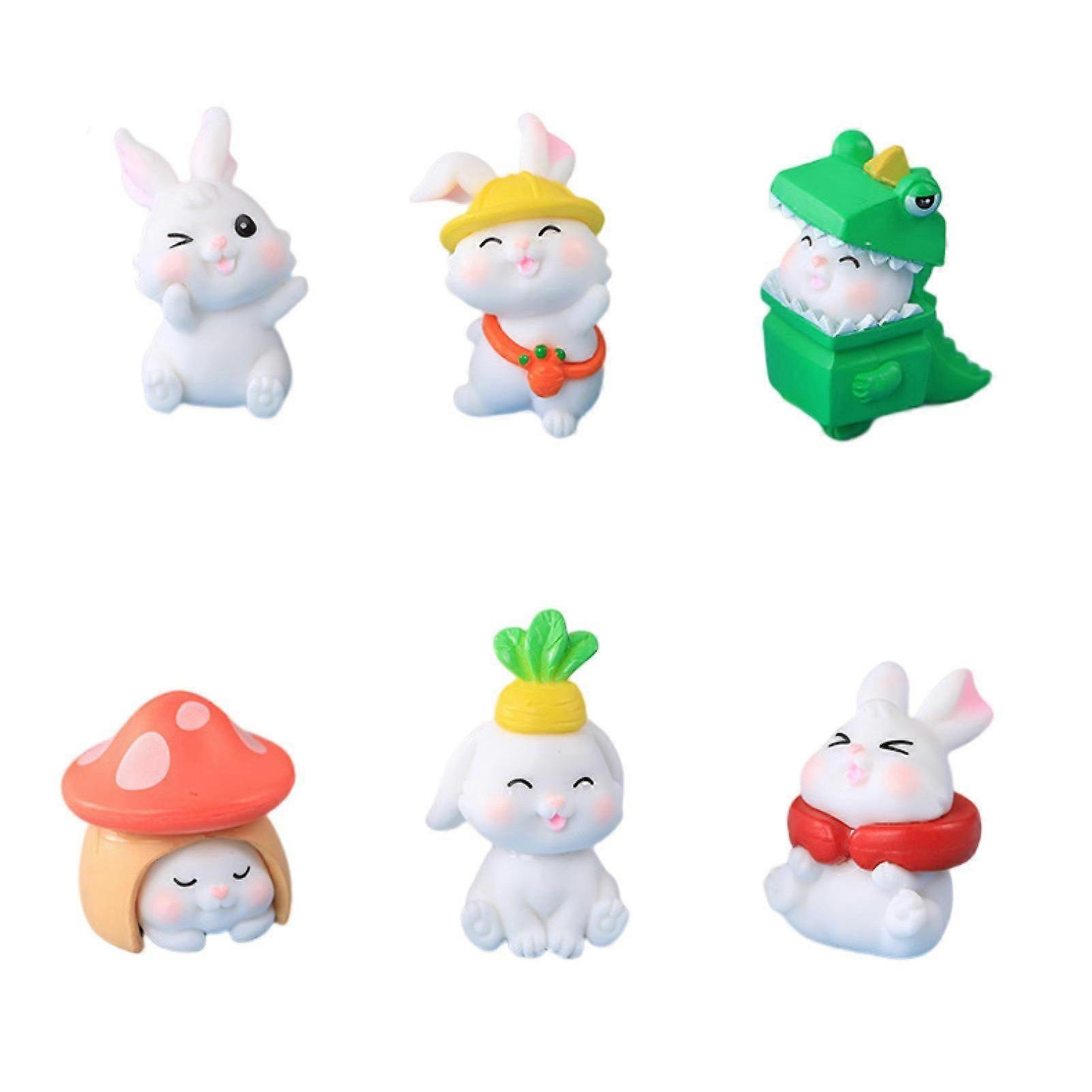6pcs Rabbit Figurine Eye-catching Creative Adorable Mini Cute Miniature Statue Ornament Home Decor