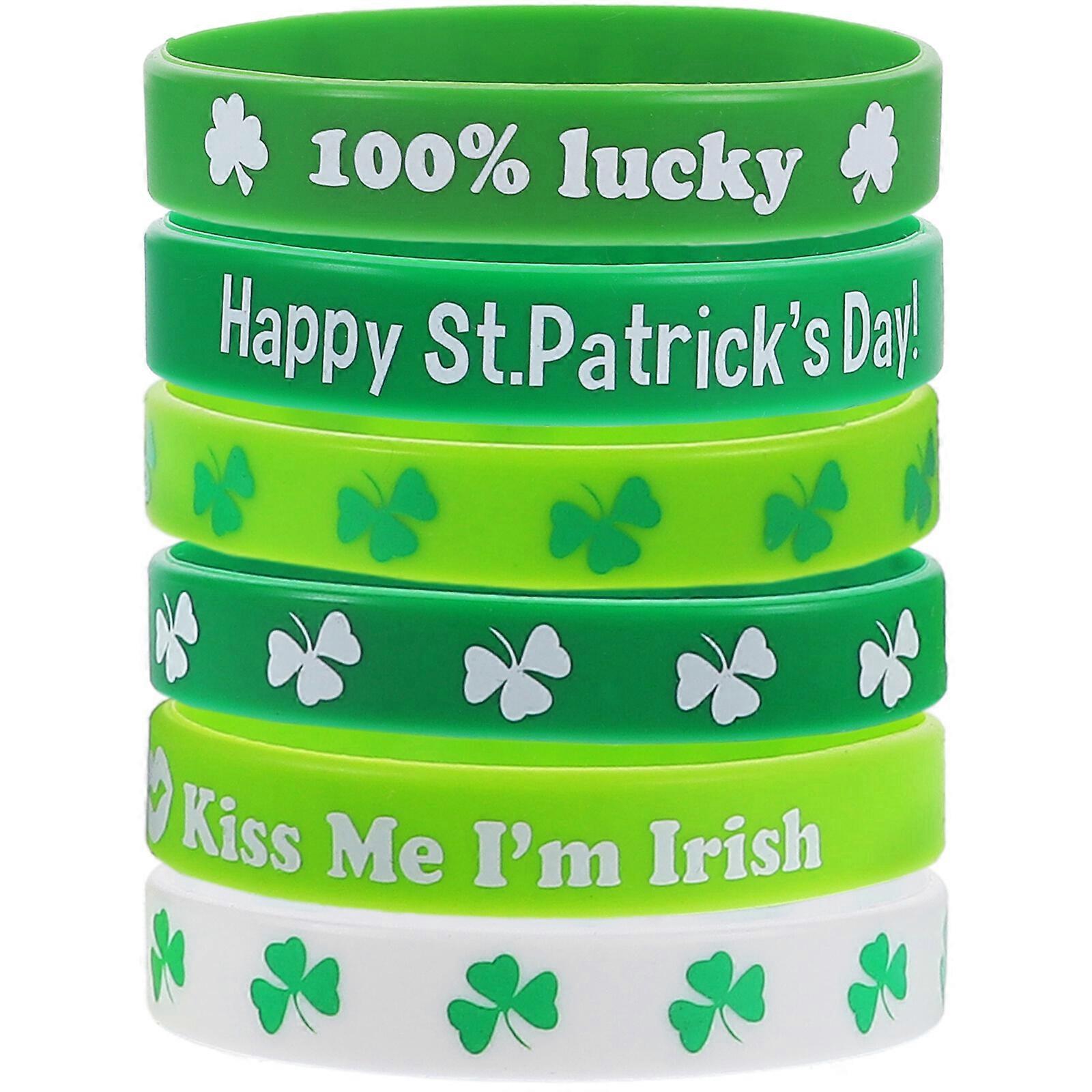 6pcs Silicone Wristbands St. Patricks Day Bracelets Shamrock Wristbands For Party