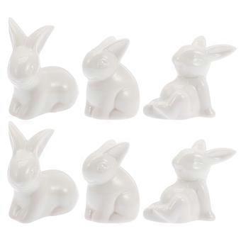 6pcs Ceramic Rabbit Easter Adornment Artistic Home Desktop Rabbit Adornment