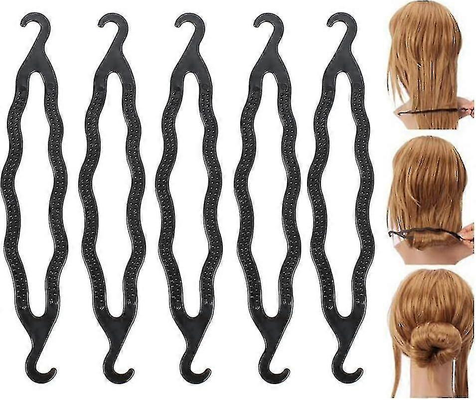 6pcs Black Plastic Bun Maker Curler Hair Clip Magic Roll Bun Hair Twist Braiding Tool