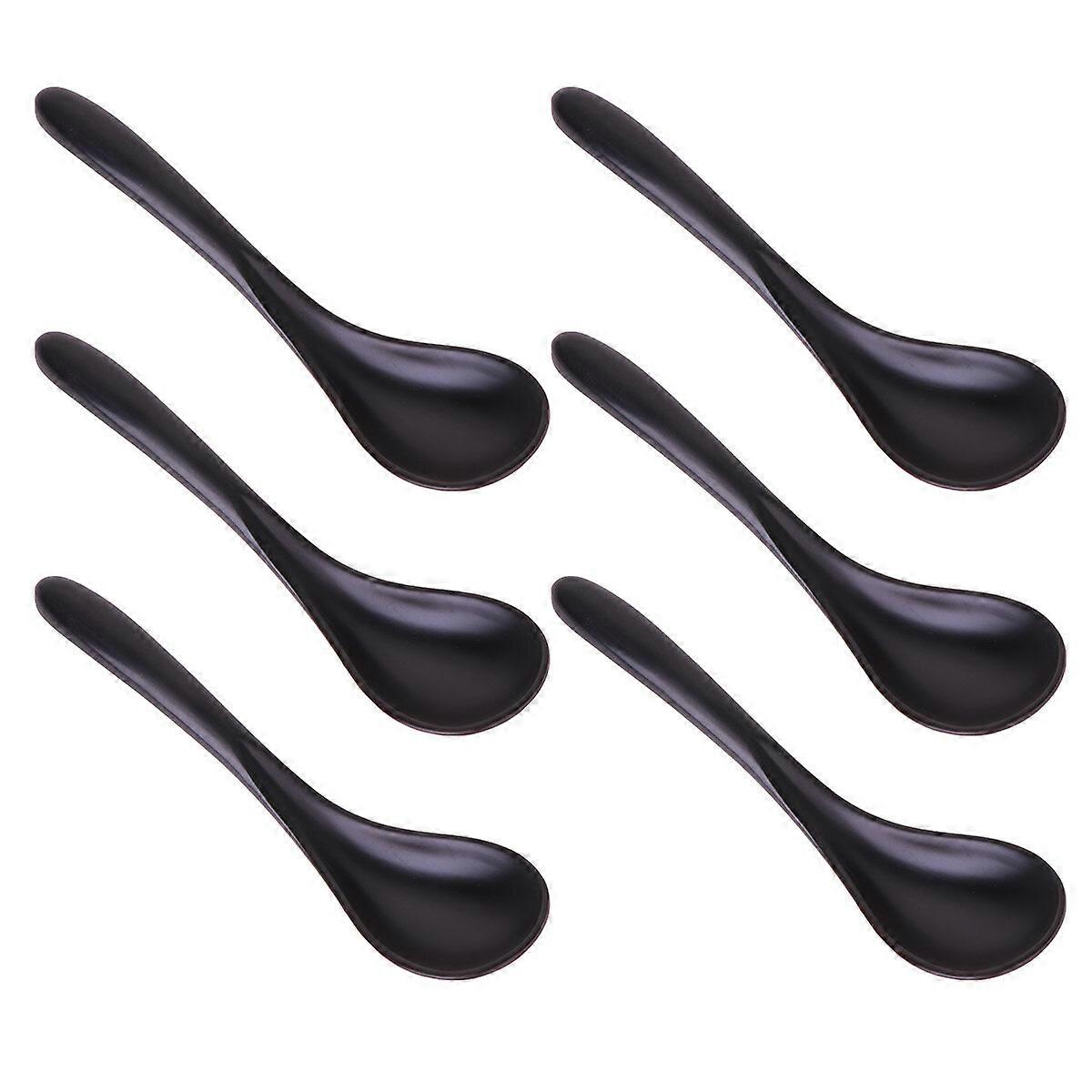 6PCS A5 Melamine Flatware Black Imitation Porcelain Soup Spoon Durable Tableware for Home (HS0123)