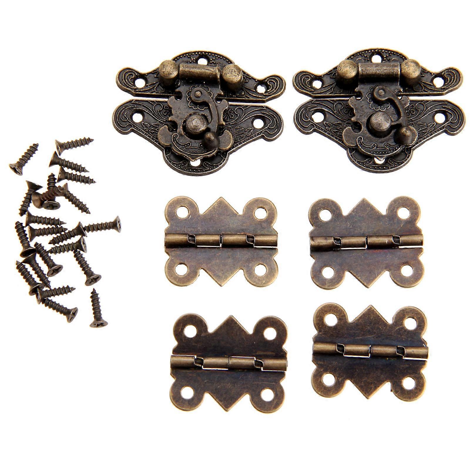 6Pcsset Cabinet Hinges with Antique Bronze Jewelry Wooden Box Case Toggle Hasp Latch Furniture Accessories Vintage Hardware