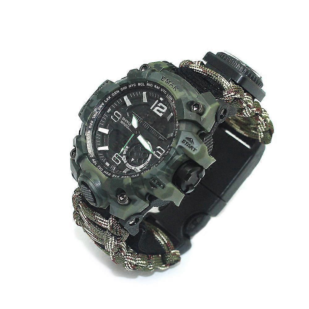 7 In 1 Outdoor Survival Watch Tactical Paracord Bracelet Watch With Compass Scraper Thermometer Paracord Whistle Camping Tools
