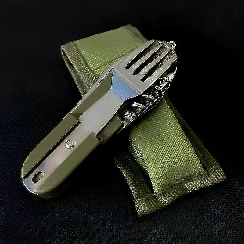 7 In 1 Multifunctional Outdoor Tableware Stainless Steel Foldable Fork Spoon Knife Picnic Camping Hiking Travelling Dinnerware Multifunctional : This product is not just a fork or a knife, but a whole set of tableware that can be used for various outdoor activities. Foldable : The product is designed to be foldable, making it easy to carry around and store in a backpack. Stainless Steel : Made of high-quality stainless steel, this product is durable and can withstand harsh outdoor conditions. Camouflage/Field Game Style : The product's unique camouflage/field game style adds a touch of adventure to your outdoor experience. 7-in-1 Multifunctional Design : This outdoor tableware set includes a knife, fork, spoon, and picnic basket, making it perfect for camping, hiking, and other outdoor activities. Foldable and Portable : The stainless steel material and foldable design make this tableware set easy to carry around, making it perfect for travel or picnics. Durable and Long-Lasting : Made from high-quality stainless steel, this tableware set is durable and can withstand high temperatures, ensuring that it will last for years to come. Camouflage/Field Game Style : The camouflage/field game style of this tableware set adds a touch of ruggedness and adventure to your outdoor experience. Tableware fork spoon Knife travel kit combination tableware outdoor portable multifunctional folding picnic camping hiking tools 7 In 1 Multifunctional Outdoor Tableware Stainless Steel Foldable Fork Spoon Knife Picnic Camping Hiking Travelling Dinnerware Specifications: Weight: About 140g Size: About 11*3*2cm Material: Stainless steel Polishing process: hemp wheel light Style: Modern Simplicity Packing specification: Suit Product quality grade: first class Function: Folding knife, fork and spoon combination Color: military green Applicable scenarios: various outdoor activities Features: 1. Foldable multi-functional outdoor tableware, including knives, forks, spoons and beer bottle opener, the whole set of equipment. 2. Tableware can be folded, small size, can be carried around, outdoor application is convenient and quick. 3. Buy tableware and send it to Oxford storage bag, which is reasonable and does not occupy space. 4. tableware use stainless steel material to build, not easy to rust, durable resistance to put. 5. Suitable for picnics, hiking and other outdoor occasions, convenient for your life. 6. Contains wine, beer bottle opener, functional diversity, help you play happily. Package Included: 1 * Outdoor Tableware 1 * Oxford bag _x000D_