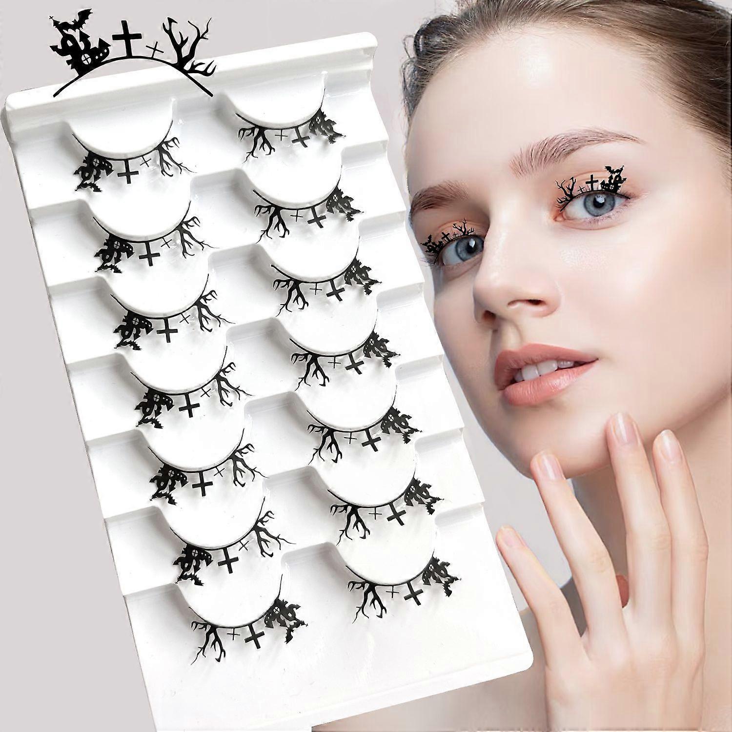 7 Pairs Halloween Eyelashes: Creative Halloween Elements Design Eyelashes - Unique Party Cosmetic Lashes For Cosplay And Party