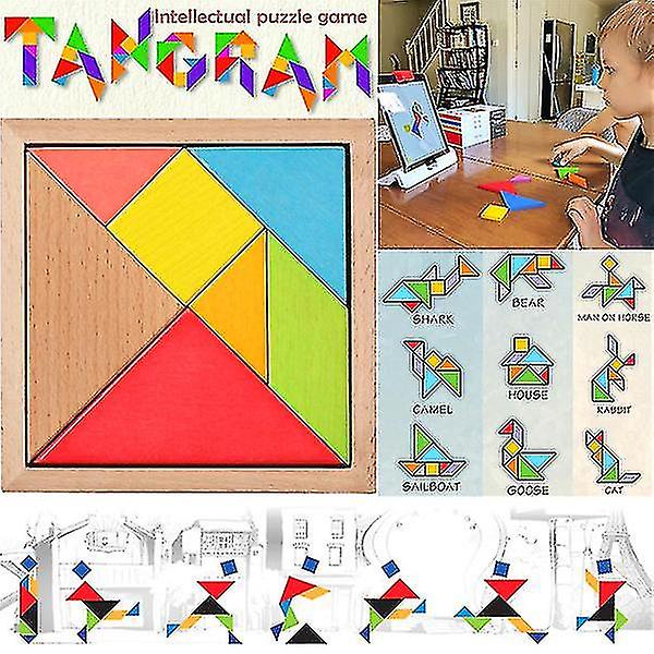 7 Piece Puzzle Square Wooden Jigsaw Tangram Puzzle I.q. Development Game Brain Teaser Intelligent Blocks Educational Toy Good Gift For Kids