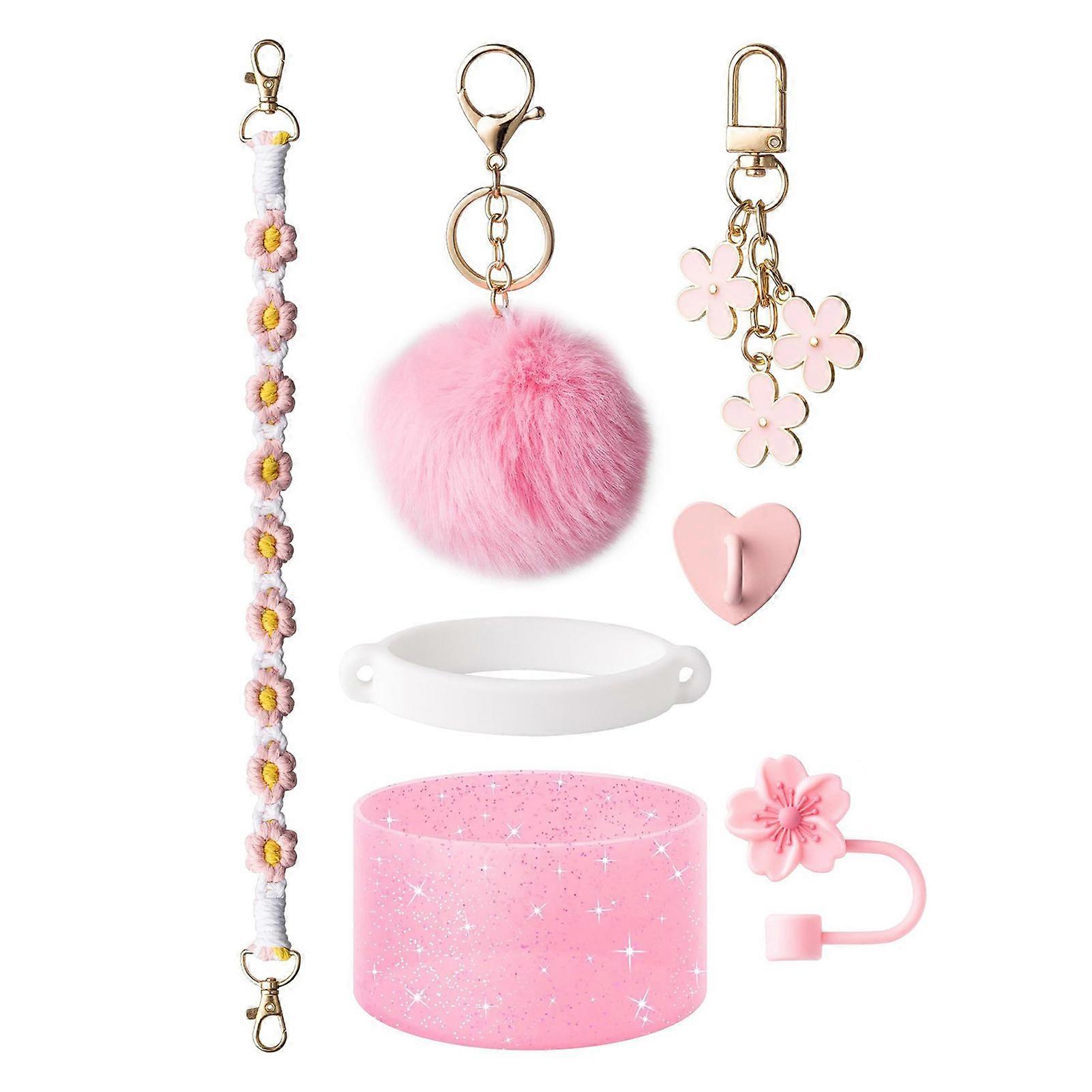 7Pcs Cup Accessories Set for 30/40oz Tumbler Silicone Handle Strap Boot Straw Cover Keychain Charms BPA-Free Reusable Decorative Gifts for Christmas V