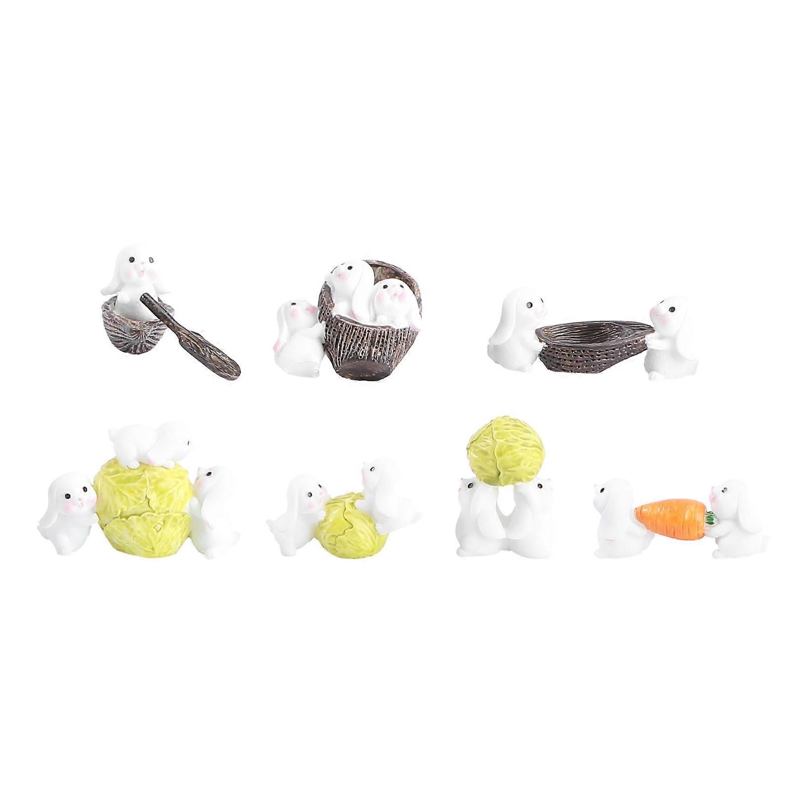 7Pcs Mini Rabbit Adornment Cake Topper Decor Micro Landscape Prop Assorted Color Cute Decoration