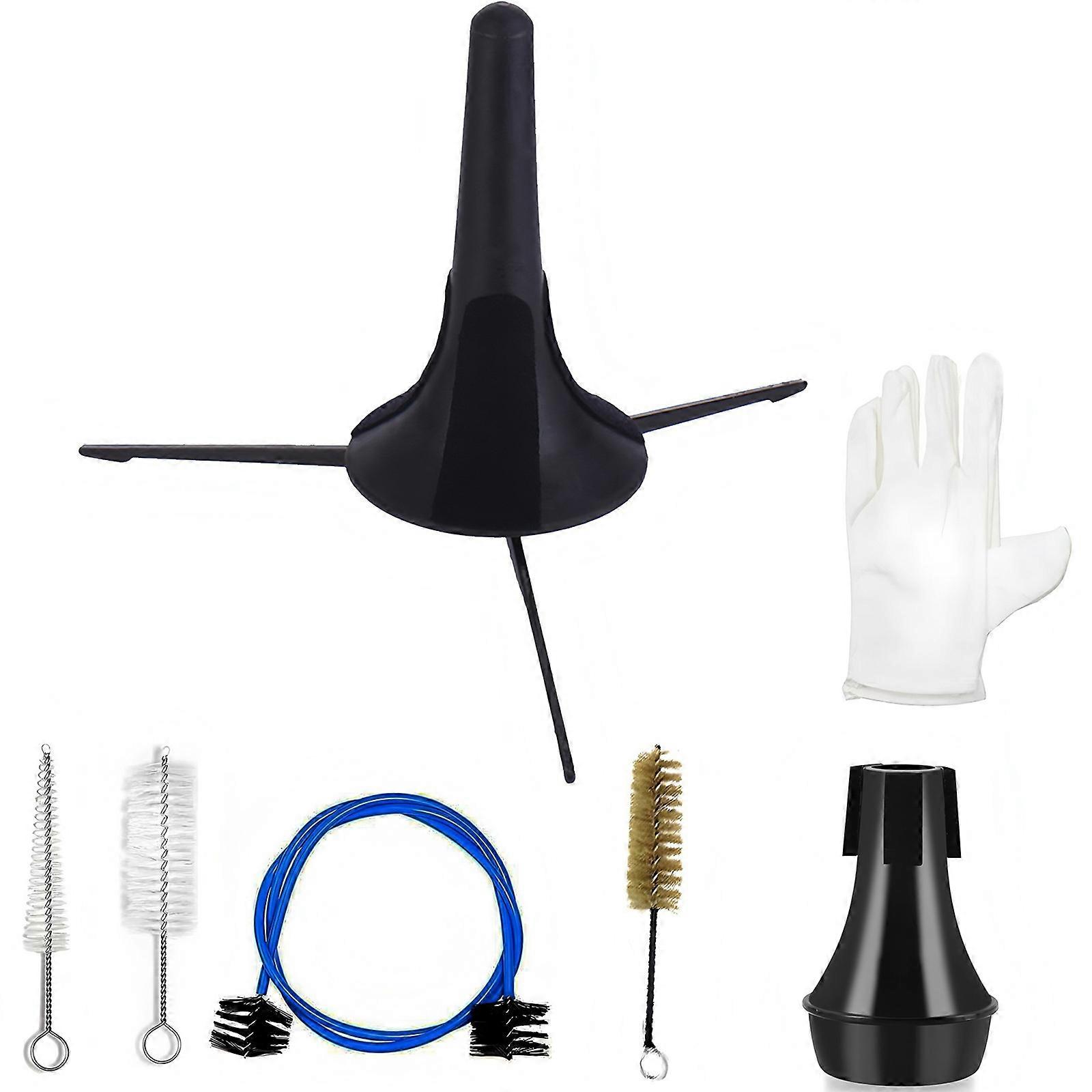 Features: This 7pcs trumpet care includes essential cleaning tools and a portables stand, featuring a mute, flexible snake brush, valves/mouthpiece brushes, and folding design for comprehensive instrument maintenance. The detachable trumpet stand prevents scratches with secure storage, while the extendable snake brush effortlessly cleans tight tubing bends and valves casings for thorough sanitation. Ideal for trumpet players, music students, and professional musicians seeking organized maintenance solution for brass instruments during rehearsals or performances. Perfect for home practice, or routine trumpet cleaning to preserve sound quality and instrument longevity. Crafted from durability metal plastic hybrids, simplifies trumpet upkeep with ergonomic brushes, compact storage, and mute assisted quiet practice capabilities. Specifications: Trumpet bracket:18.5×10.5cm/7.3×4.1in Trumpet mute: 9.65x6.2cm/3.79×2.44in Component:Plastic + Metal Package Includes: 1pc Trumpet Stand 1pc Valves Brush 1pc Snake Brush 2pcs Brush 1pc Trumpet Mute 1pair Gloves note: 1.Please allow 1-2cm errors due to manual measurement, making sure that you will not mind before order. 2.Due to the differences between different monitors, the picture may not reflect the actual color.