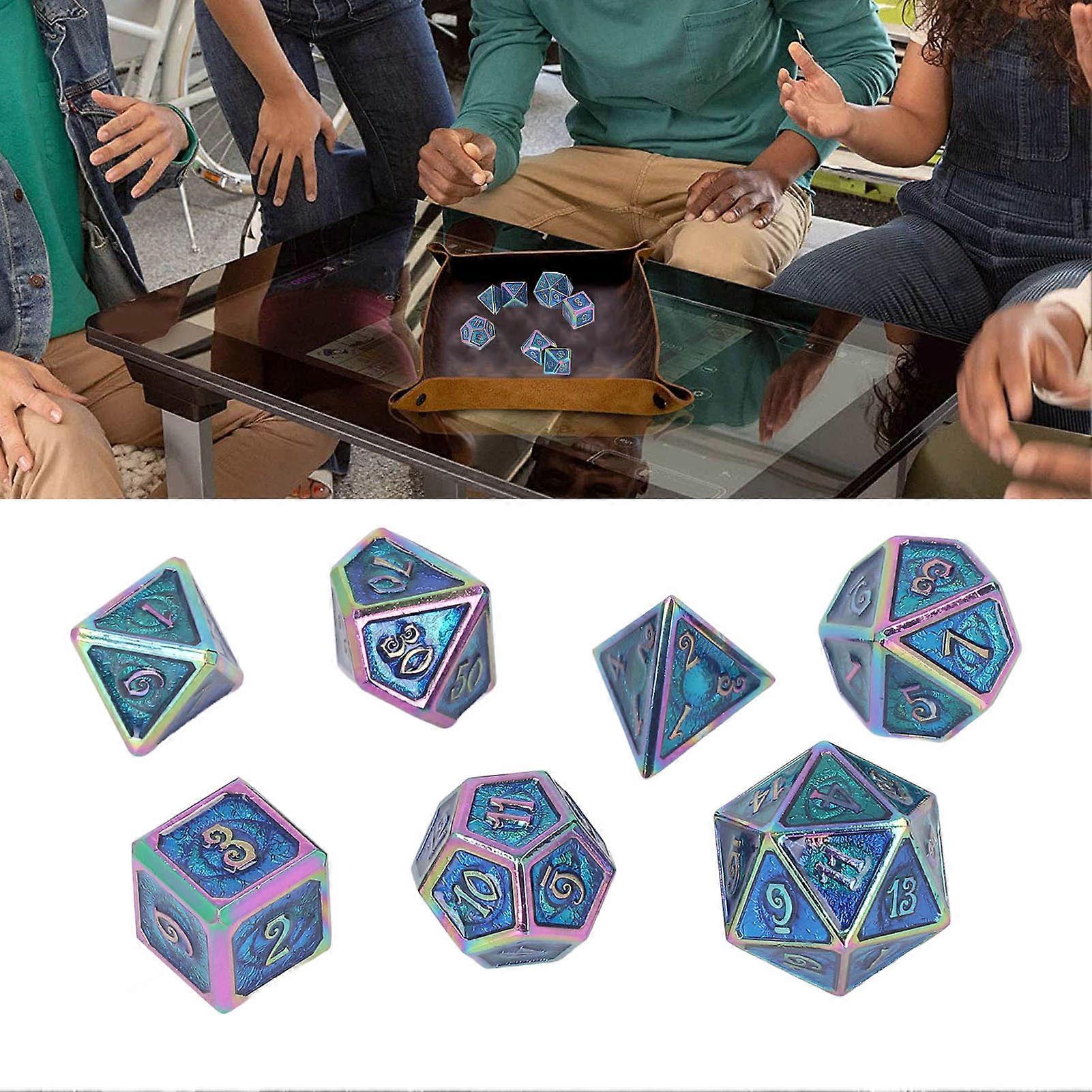 7Pcs Electroplated Metal Multi-Sided Dice Set Blue Enamel