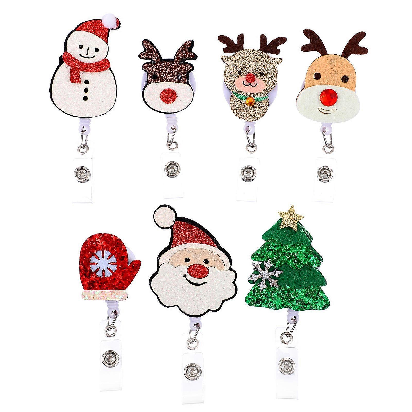 7pcs Christmas Badge Reel Retractable Holder ID Cards Felt Badge Holder Clips