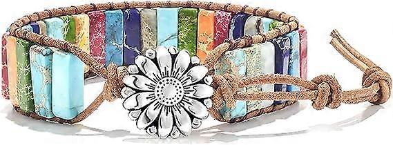 7 Chakra Bracelets for Women with Real Stones Leather Wrap Healing Bead Bracelet Women Men Boho Friendship Jewelry