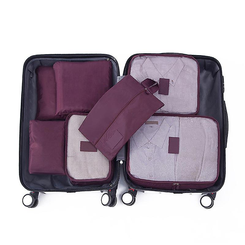7 Set Packing Cubes Waterproof Dirt Resistant Oxford Cloth Luggage Packing Organizers for Travel Wine Red
