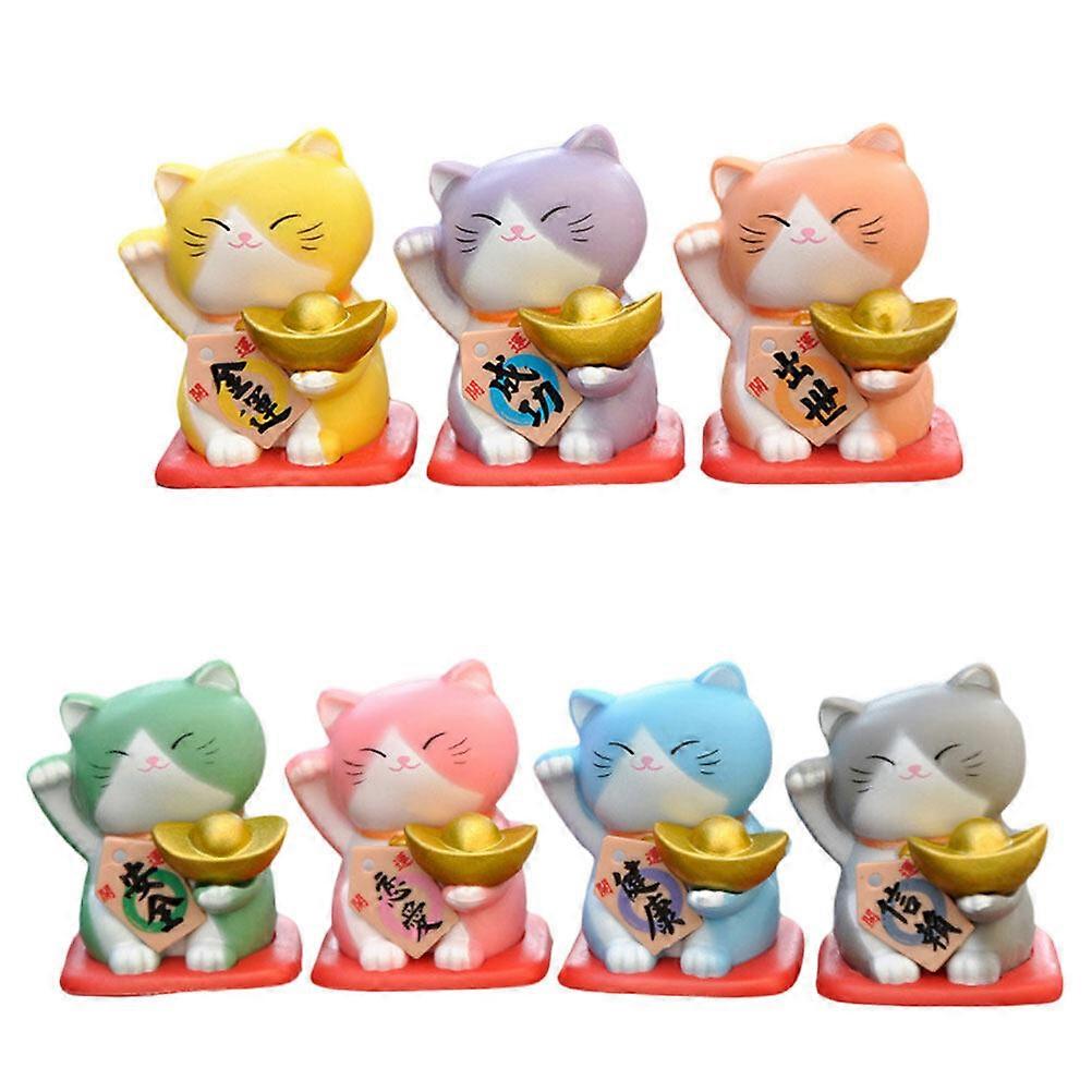 7pcs Miniature Cat Statues Resin Craft Cat Figures Mini Garden Miniature Statues Decors