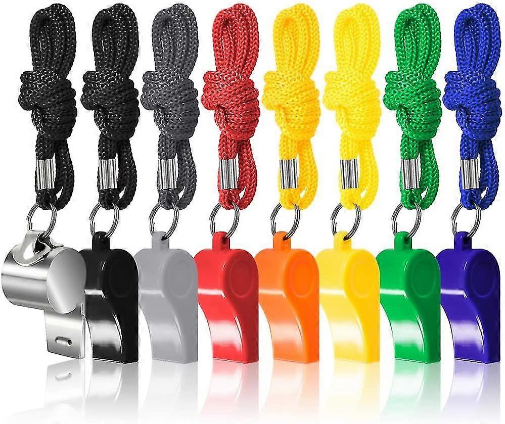 8 Pack Coach Referee Whistle With Lanyard, Colorful Plastic And Stainless Steel Football Whistle For Sport Lifeguard Survival Emergency Training