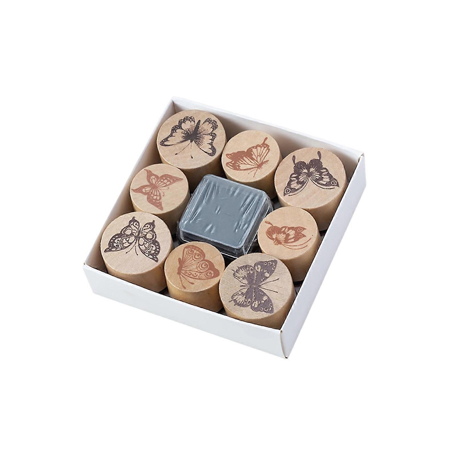 8Pieces Vintage Wood Stamp Flower Stamper with Inkpad crapbooking Stamp for Card Making Journal Planner Scrapbooking Multicolor