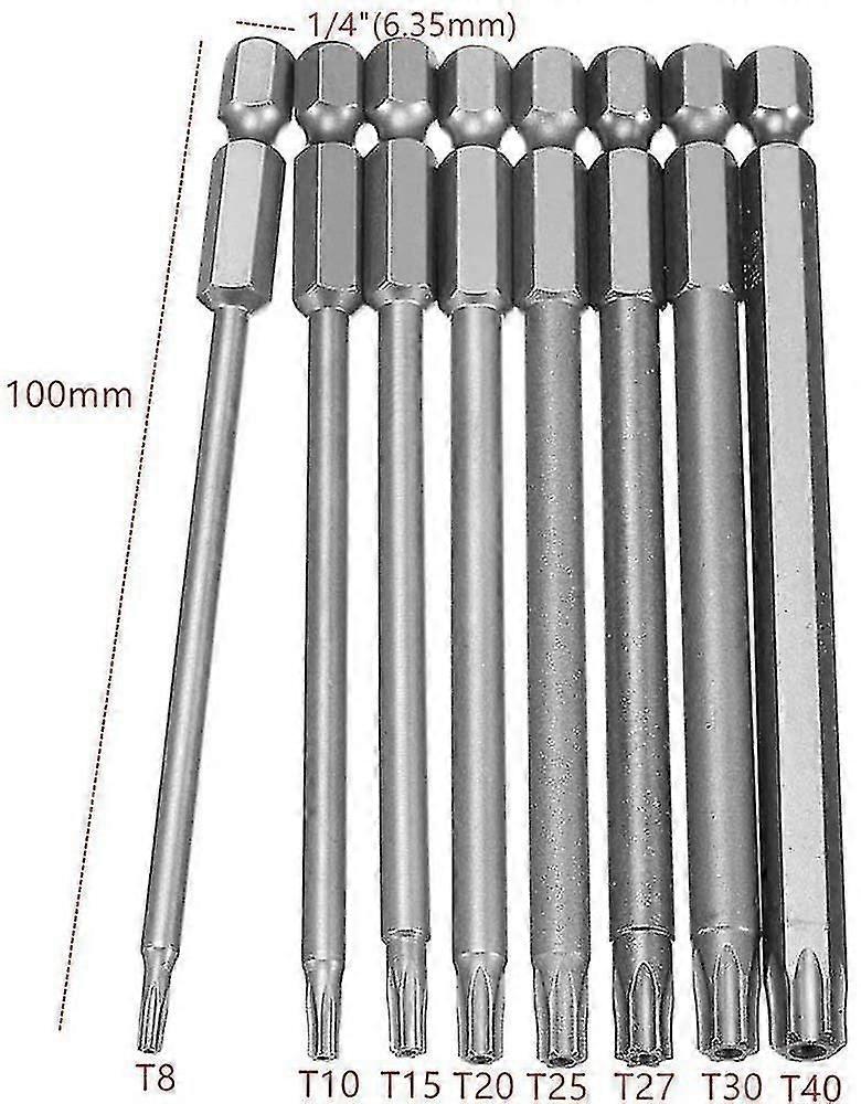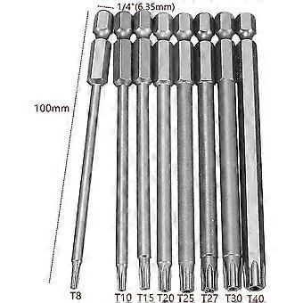 8 Pieces Extra Long Hollow Magnetic Torx Screwdriver Bits Set 1/4 Inch Hex Shank Screwdriver Power Tools T8-t40 100mm,,silver