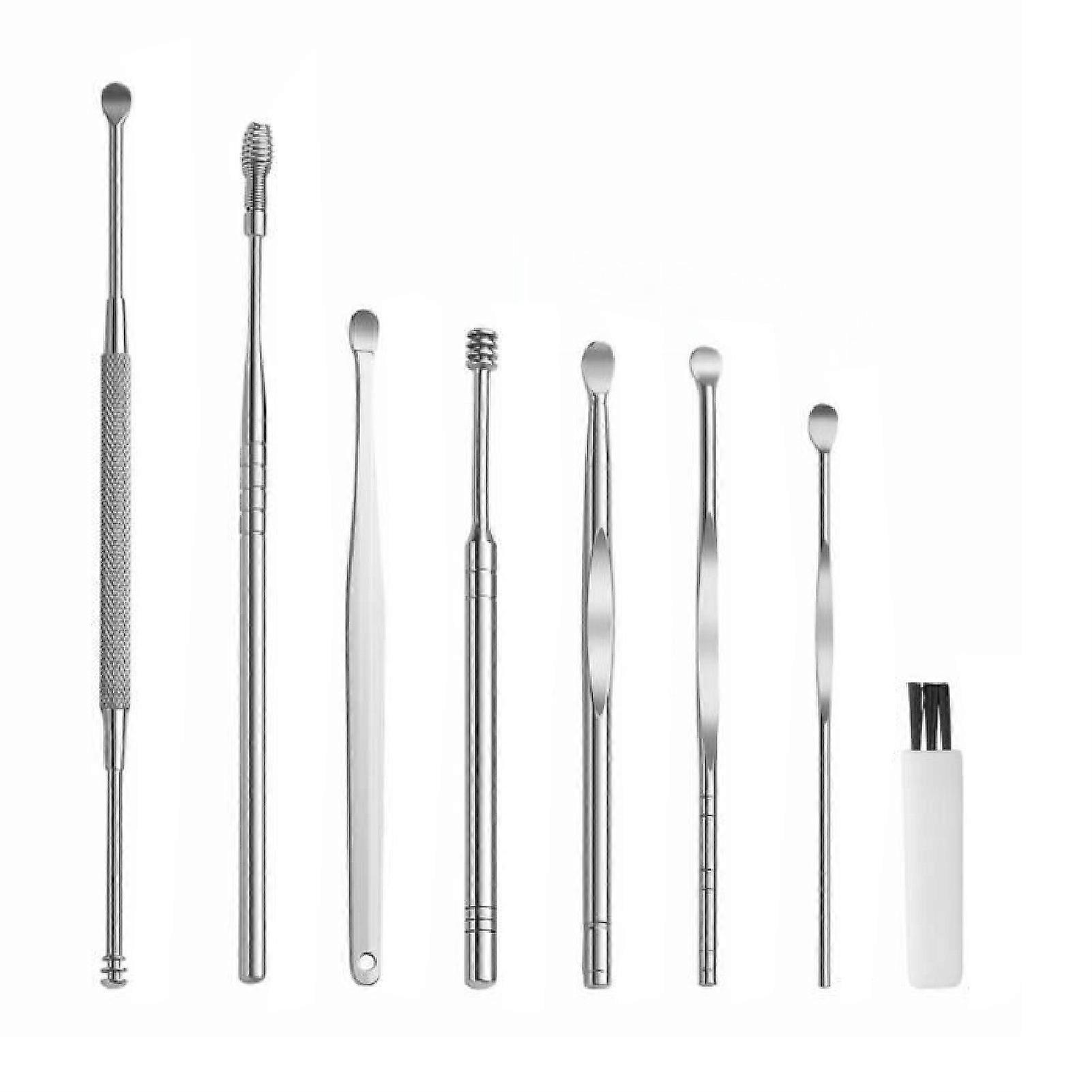 8Pcs Ear Picks with Cleaning Brush Ear Care Stainless Steel Ears Wax Removers Cleaning Tool for Adults QinHai