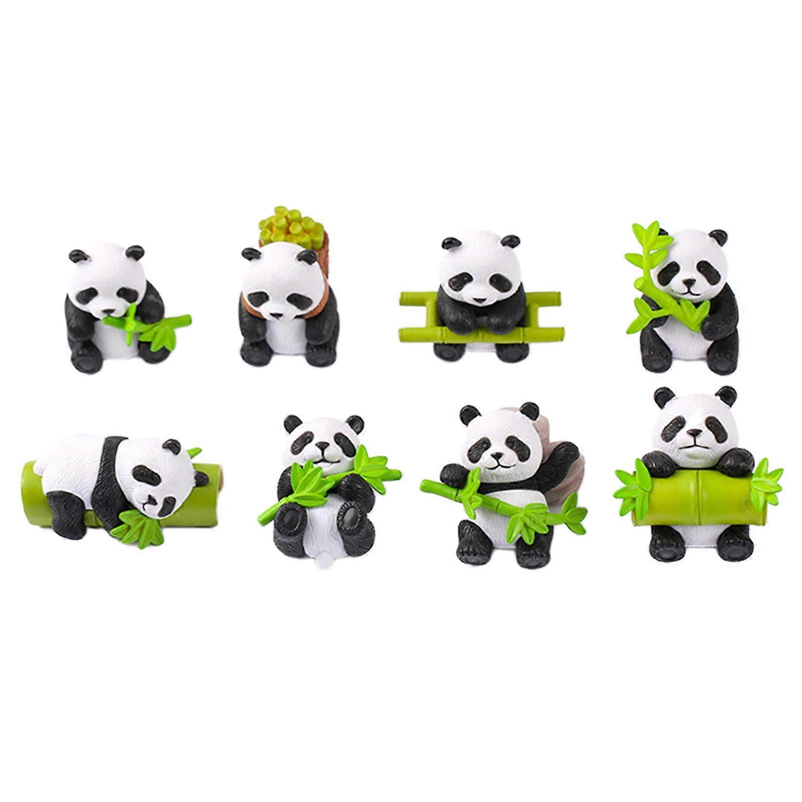 8Pcs Bamboo Panda Figurine Resin Animal Figure Toy Model Statue Sculpture Cake Topper Decoration Desktop Ornament Festival Gift Jikaixiang