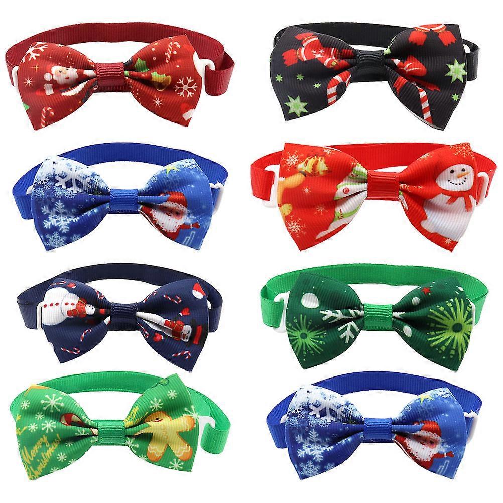 8Pcs Christmas Bowknot Ties Pet Costume Ornament Festival Supply (Random Color)