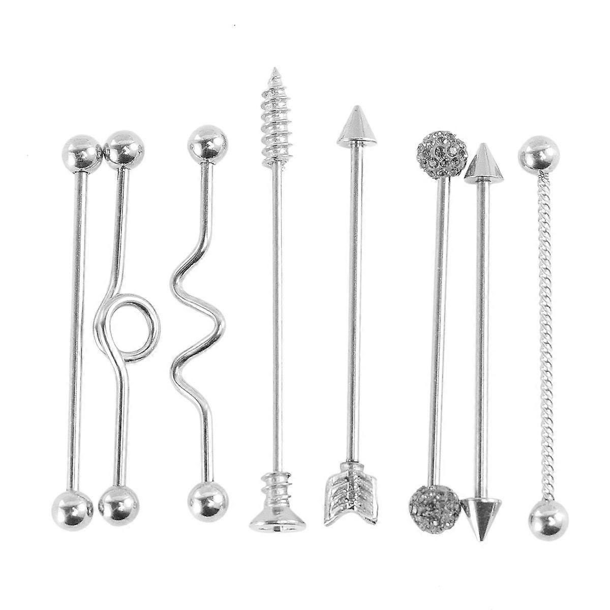 8Pcs Industrial Ear Studs Stainless Steel Arrows Screw Barbell Fashion Earring Piercing Jewelry for Woman Man (Silver)