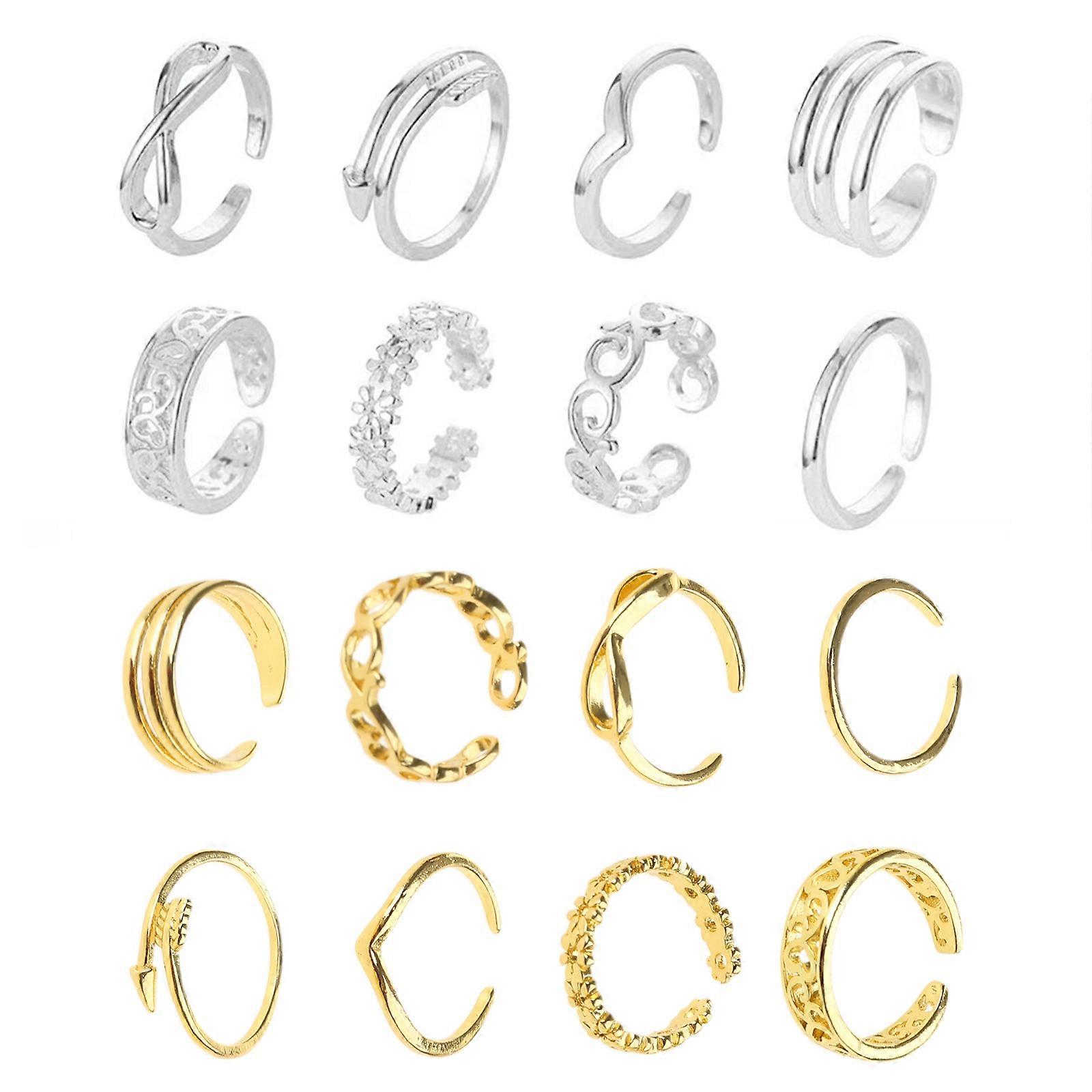 8PCS Adjustable Toe Rings for Women Flower for Arrow Band Open Tail Ring Women Beach Foot Jewelry Set