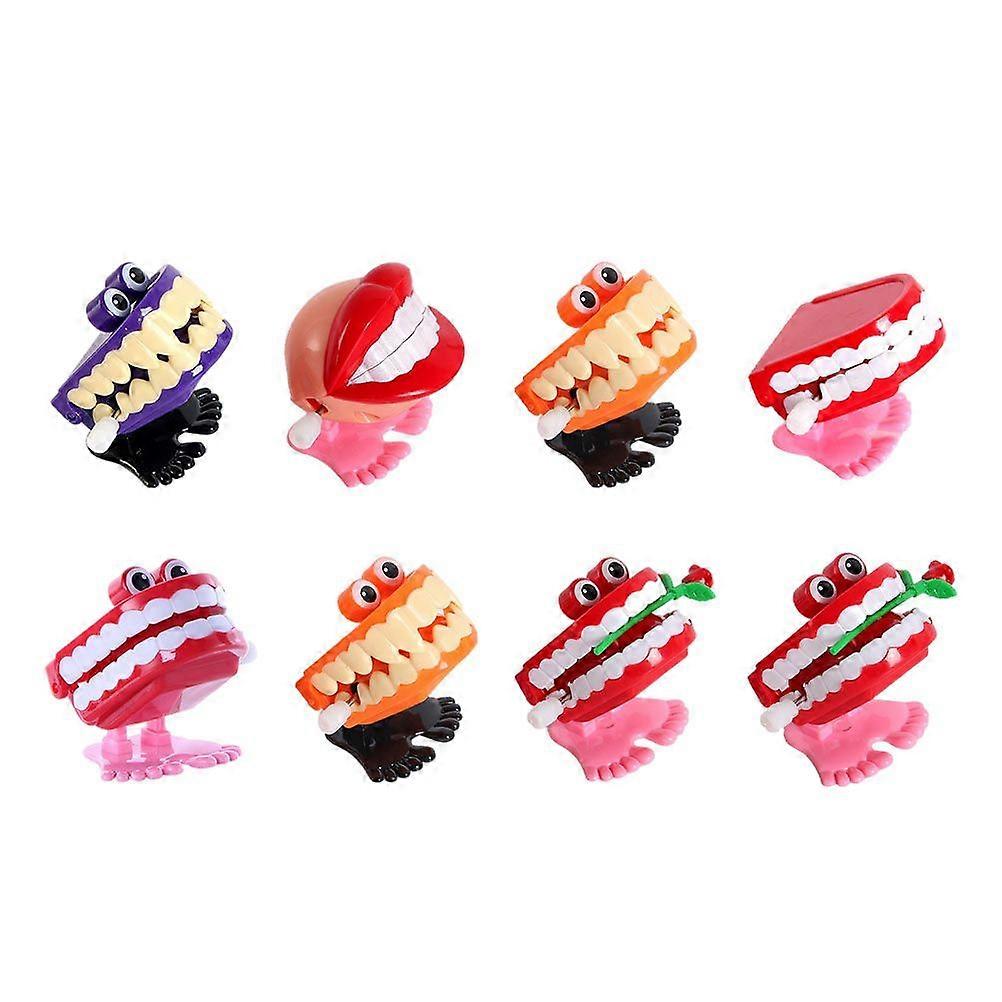 8Pcs Creative Kids Wind-up Chattering Teeth Toys Funny Walking Teeth Toys