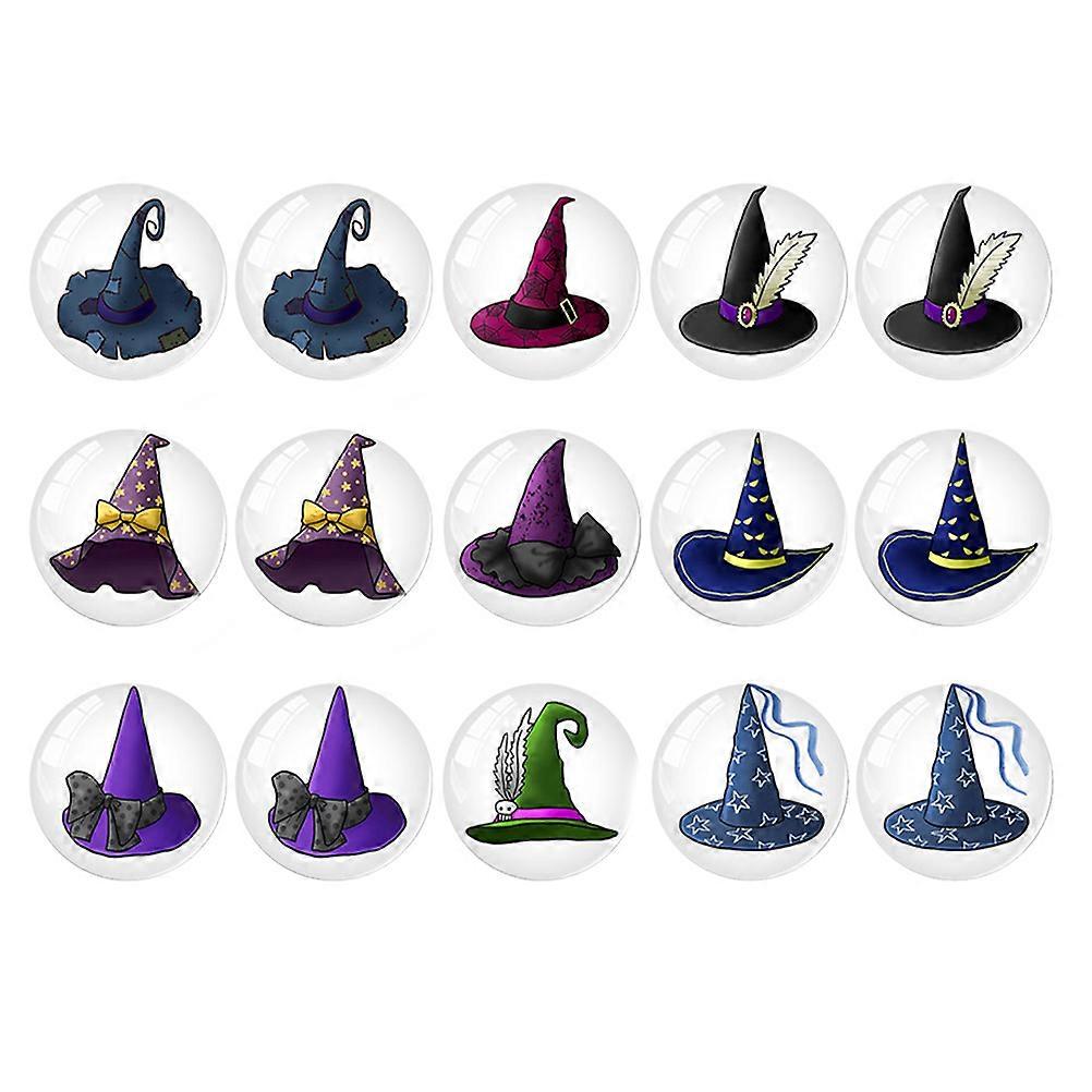 8pcs Halloween Witch Hat Glass Magnets Round Decorative Fridge Stickers for Home, Office, School Halloween Party Decoration