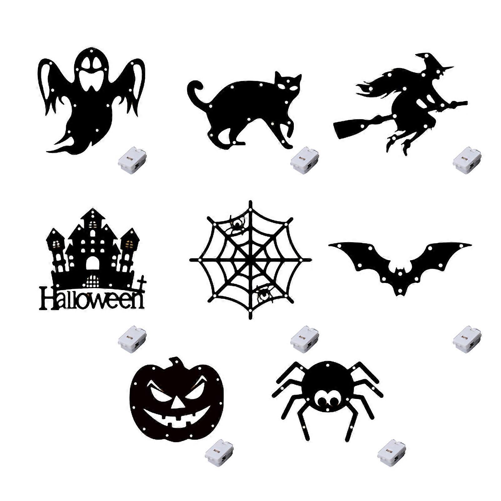 8Pcs Halloween Light Decoration Battery Operated Ghost Pumpkin Witch Bat Wall Window Hanging Lights Indoor Home Party Decoration