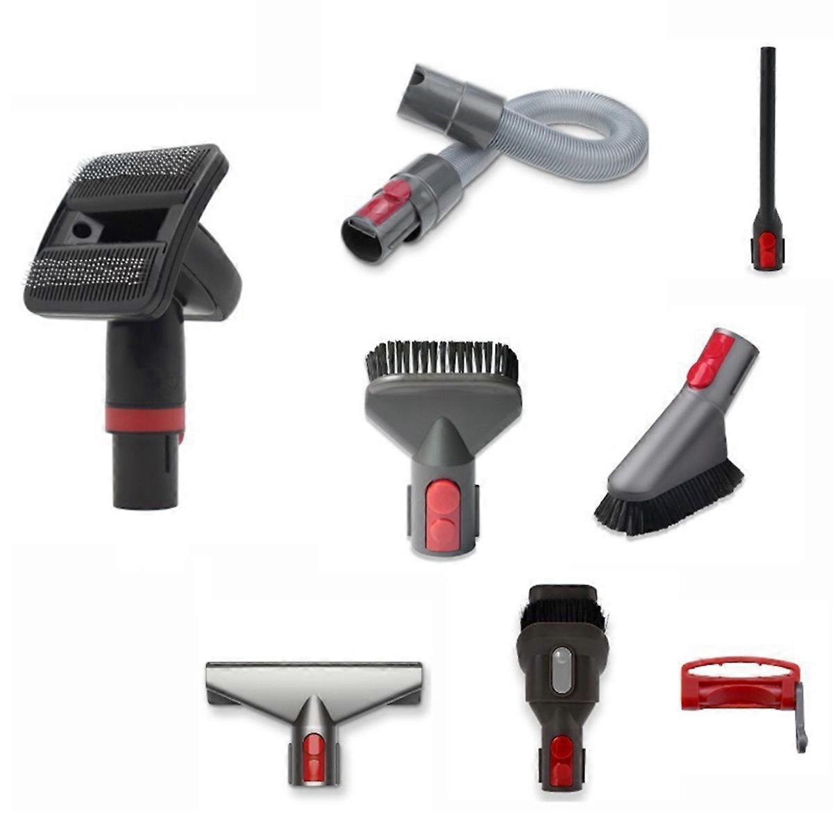cleaning solution: This complete cleaning set includes a pet brush, flexible extension hose, mattress cleaning brush, crevice cleaner, and switch lock, etc. It is a complete set for your meticulous cleaning. Deep hair care: This pet grooming brush for V7 V8 V10 V11 V15 features extra-long bristles that can penetrate deep into pet hair, effectively untangling and removing tangles. It is perfect for cats and dogs, ensuring thorough cleaning and improving hair health and appearance. Pet care: Our pet grooming brush is designed to provide a soothing experience, preventing any skin irritation or discomfort. This makes it easy to groom your pet, promote better hygiene habits, and enhance the bond between you and your pet. Seamless compatibility: This brush head attachment is tailored for pet grooming vacuum cleaners, ensuring a and enhancing the functionality of the vacuum cleaner. By seamlessly integrating with your existing system, it can improve the efficiency of your pet's daily grooming. Hygienic and : Our grooming brush is made of sturdy materials that are not only but also easy to clean. This ensures that it remains hygienic after multiple groomings, helping you create a clean and healthy environment for your pet. Package Details: 1 * 2-in-1 Brush 1 * Sofa Vacuum 1 * Soft Brush 1 * Hard Brush 1 * Crevice Brush 1 * Switch Lock 1 * Pet Brush (Black) 1 * Hose Color: As Shown Material: plastic Package Contents: 1 * Pet Brush Kit(Switch lock Random color, don't accept the specified color) Only the above package content, other products are not included. Note: Light reflection and different displays may cause the color of the item in the picture a little different from the real thing. The measurement allowed error is +/- 1-3cm.