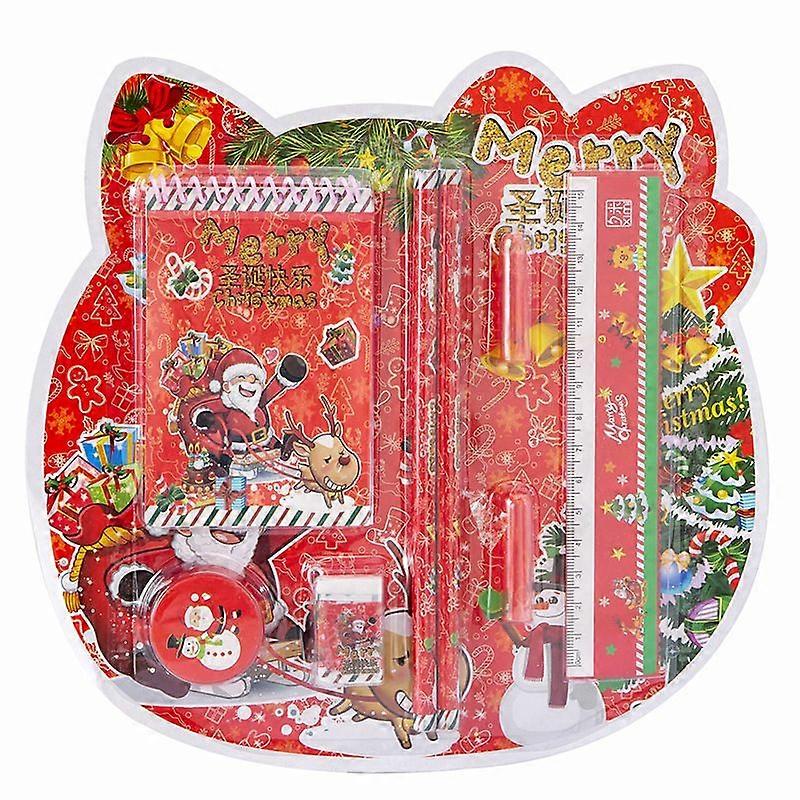 8Pcs/Set Christmas Stationary Cute Cartoon Pencil Eraser Ruler Pencil Sharpener Notebook Kit School Stationary Kids Gifts
